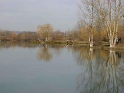 Proche du stade, joli lac ombragé, parking.Accés par la RN124Profondeur maxi ...